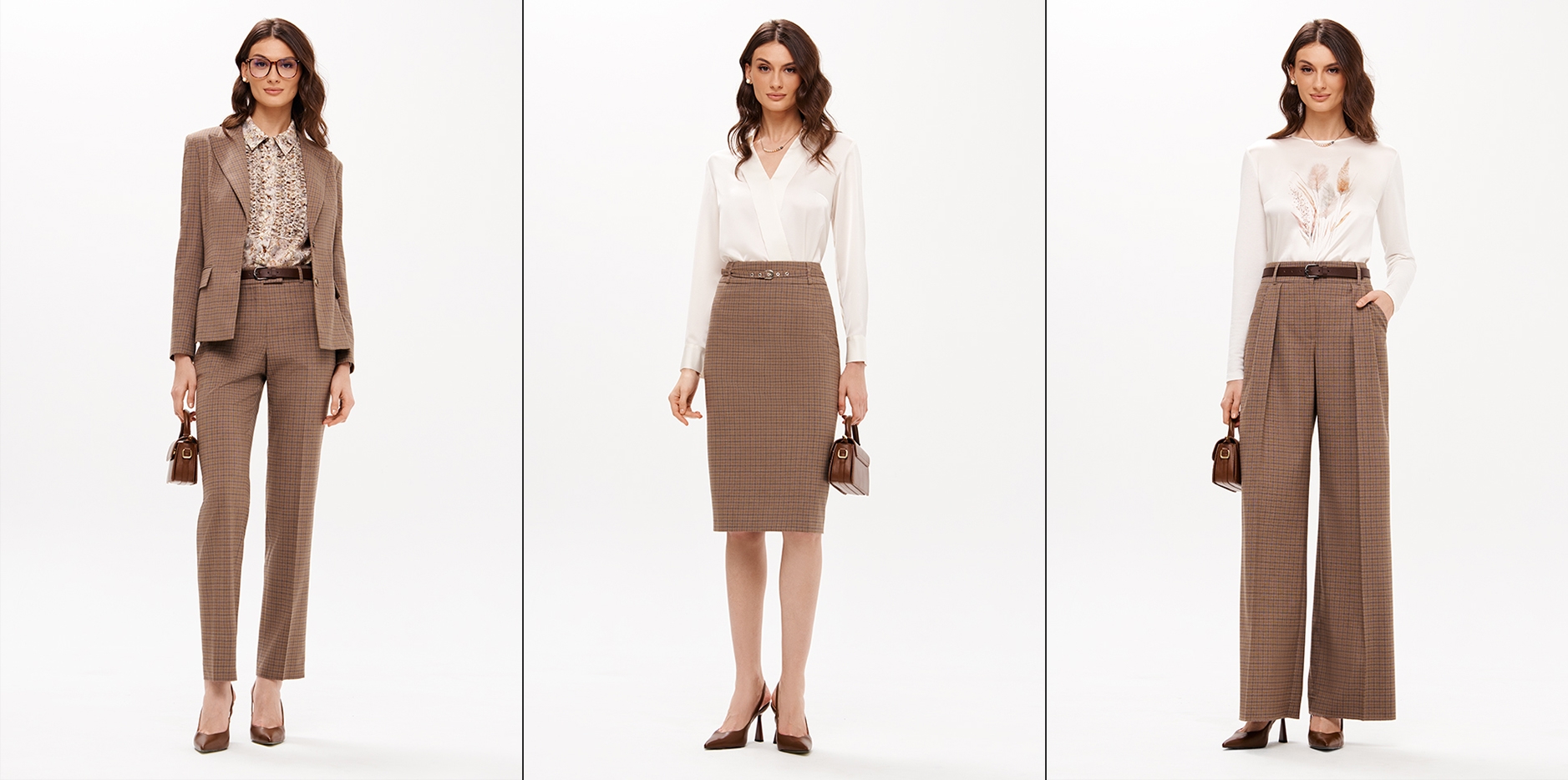 Так, например, в нашей новой коллекции представлены юбка и брюки в уютном табачном оттенке, которые обеспечат комфорт в холодное время года.